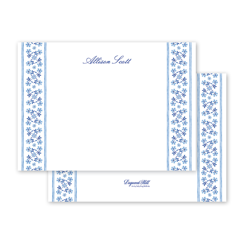 Select your order quantity from the dropbox menu below and check your total. Enter the personalization text for your notecard in the “Note” box below. Click Add to Cart. You will receive a proof notification via email and text message within 3 to 5 business days.Each card comes with one free BLANK Eggshell White envelope.