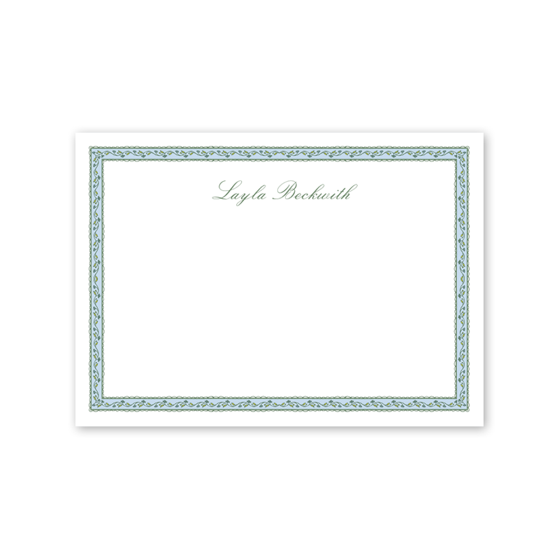 Select your order quantity from the dropbox menu below and check your total. Enter the personalization text for your notecard in the “Note” box below. Click Add to Cart. You will receive a proof notification via email and text message within 3 to 5 business days.Each card comes with one free BLANK Eggshell White envelope.