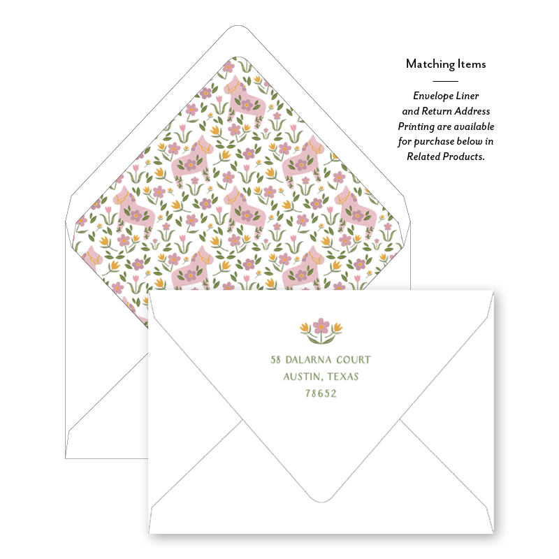 Select your order quantity from the dropbox menu below and check your total. Enter the personalization text for your notecard in the “Note” box below. Click Add to Cart. You will receive a proof notification via email and text message within 3 to 5 business days.Each card comes with one free BLANK Eggshell White envelope.