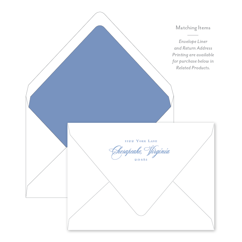 Select your order quantity from the dropbox menu below and check your total. Enter the personalization text for your notecard in the “Note” box below. Click Add to Cart. You will receive a proof notification via email and text message within 3 to 5 business days.Each card comes with one free BLANK Eggshell White envelope.