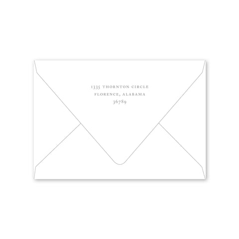 Select your order quantity from the dropbox menu below and check your total. Enter the personalization text for your notecard in the “Note” box below. Click Add to Cart. You will receive a proof notification via email and text message within 3 to 5 business days.Each card comes with one free BLANK Eggshell White envelope.
