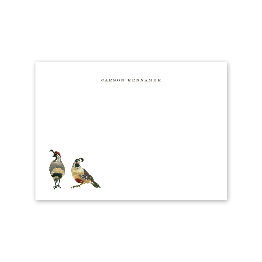 Select your order quantity from the dropbox menu below and check your total. Enter the personalization text for your notecard in the “Note” box below. Click Add to Cart. You will receive a proof notification via email and text message within 3 to 5 business days.Each card comes with one free BLANK Eggshell White envelope.