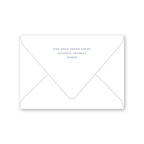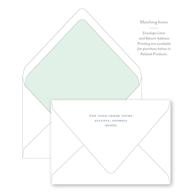 Select your order quantity from the dropbox menu below and check your total. Enter the personalization text for your notecard in the “Note” box below. Click Add to Cart. You will receive a proof notification via email and text message within 3 to 5 business days.Each card comes with one free BLANK Eggshell White envelope.