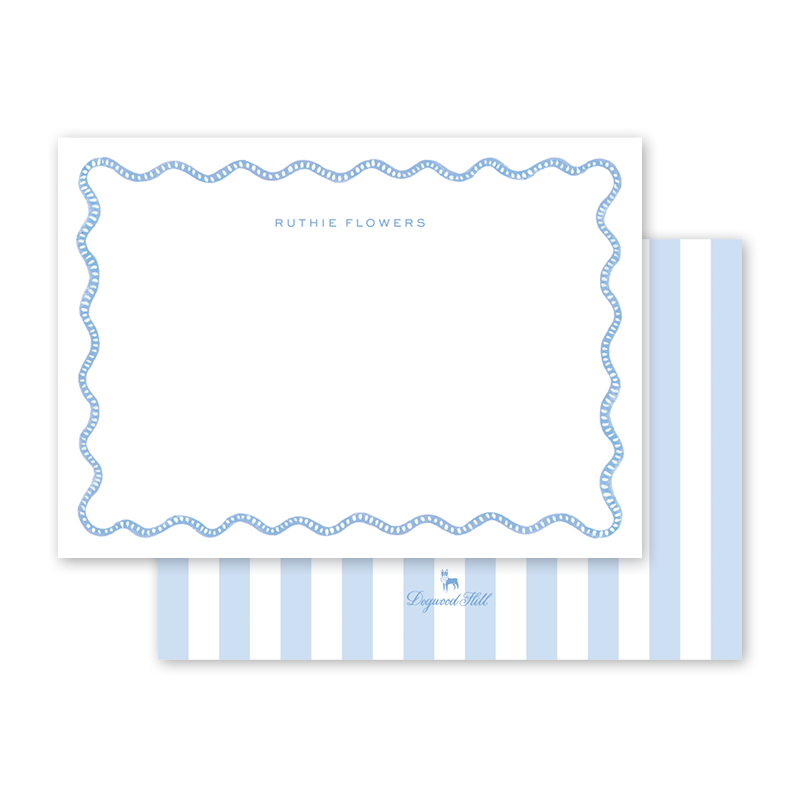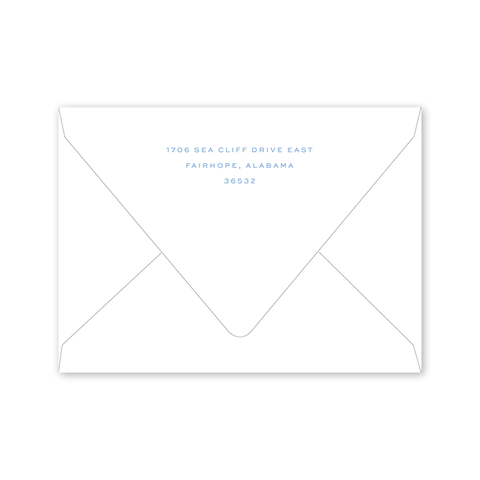 Select your order quantity from the dropbox menu below and check your total. Enter the personalization text for your notecard in the “Note” box below. Click Add to Cart. You will receive a proof notification via email and text message within 3 to 5 business days.Each card comes with one free BLANK Eggshell White envelope.