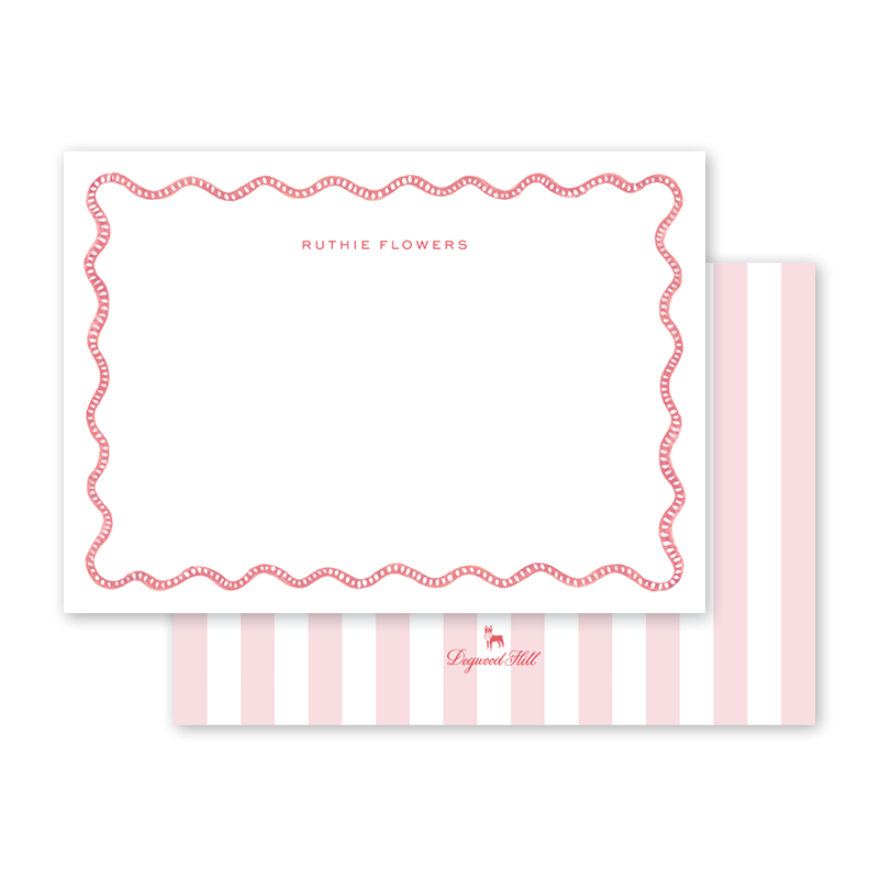 Select your order quantity from the dropbox menu below and check your total. Enter the personalization text for your notecard in the “Note” box below. Click Add to Cart. You will receive a proof notification via email and text message within 3 to 5 business days.Each card comes with one free BLANK Eggshell White envelope.