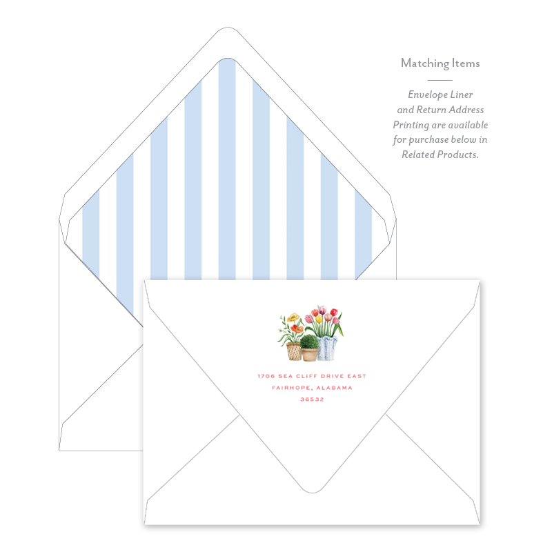 Select your order quantity from the dropbox menu below and check your total. Enter the personalization text for your notecard in the “Note” box below. Click Add to Cart. You will receive a proof notification via email and text message within 3 to 5 business days.Each card comes with one free BLANK Eggshell White envelope.