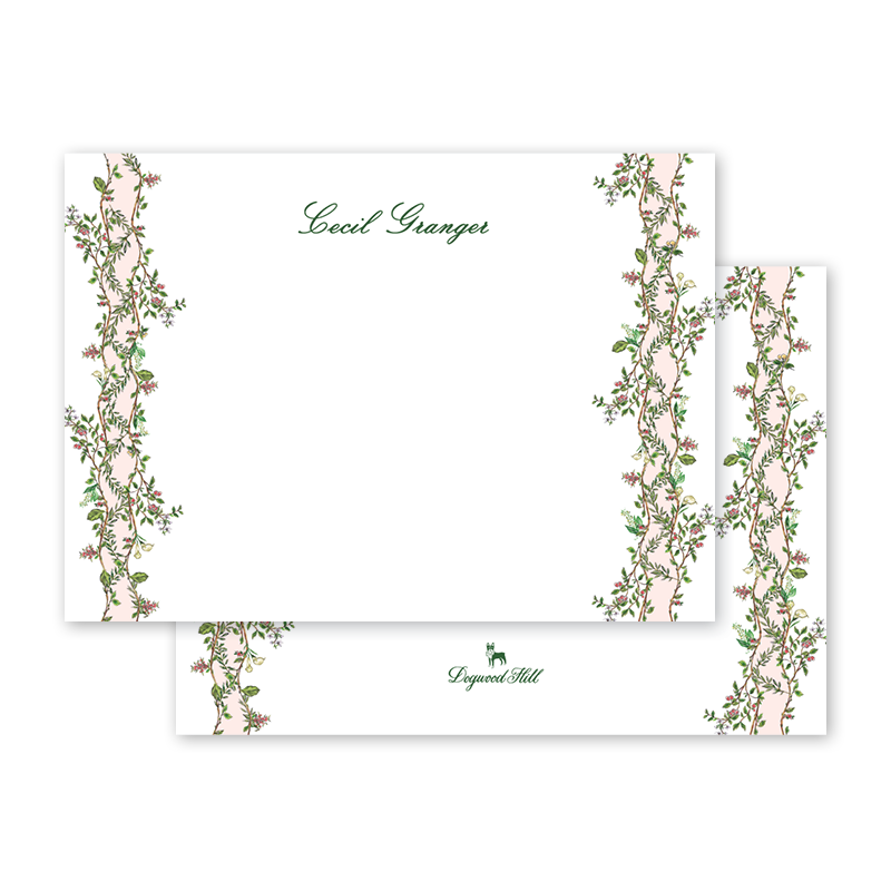 Select your order quantity from the dropbox menu below and check your total. Enter the personalization text for your notecard in the “Note” box below. Click Add to Cart. You will receive a proof notification via email and text message within 3 to 5 business days.Each card comes with one free BLANK Eggshell White envelope.