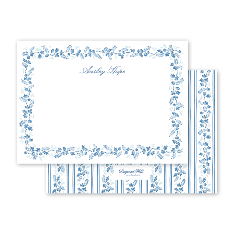 Select your order quantity from the dropbox menu below and check your total. Enter the personalization text for your notecard in the “Note” box below. Click Add to Cart. You will receive a proof notification via email and text message within 3 to 5 business days.Each card comes with one free BLANK Eggshell White envelope.