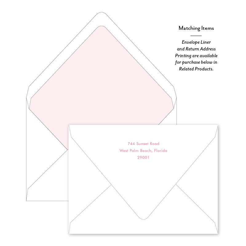 Select your order quantity from the dropbox menu below and check your total. Enter the personalization text for your notecard in the “Note” box below. Click Add to Cart. You will receive a proof notification via email and text message within 3 to 5 business days.Each card comes with one free BLANK Eggshell White envelope.