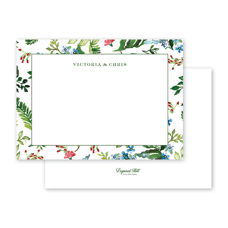 Select your order quantity from the dropbox menu below and check your total. Enter the personalization text for your notecard in the “Note” box below. Click Add to Cart. You will receive a proof notification via email and text message within 3 to 5 business days.Each card comes with one free BLANK Eggshell White envelope.