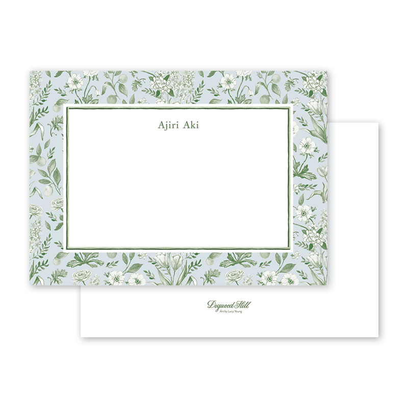 Select your order quantity from the dropbox menu below and check your total. Enter the personalization text for your notecard in the “Note” box below. Click Add to Cart. You will receive a proof notification via email and text message within 3 to 5 business days.Each card comes with one free BLANK Eggshell White envelope.