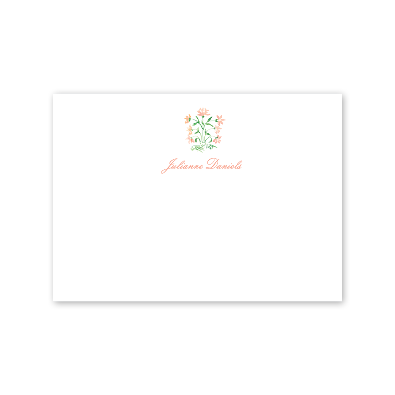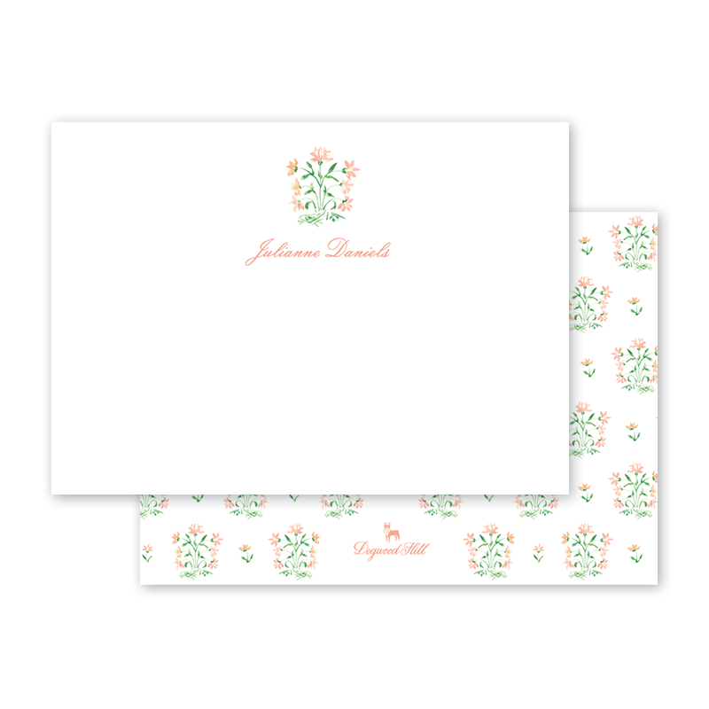 Select your order quantity from the dropbox menu below and check your total. Enter the personalization text for your notecard in the “Note” box below. Click Add to Cart. You will receive a proof notification via email and text message within 3 to 5 business days.Each card comes with one free BLANK Eggshell White envelope.