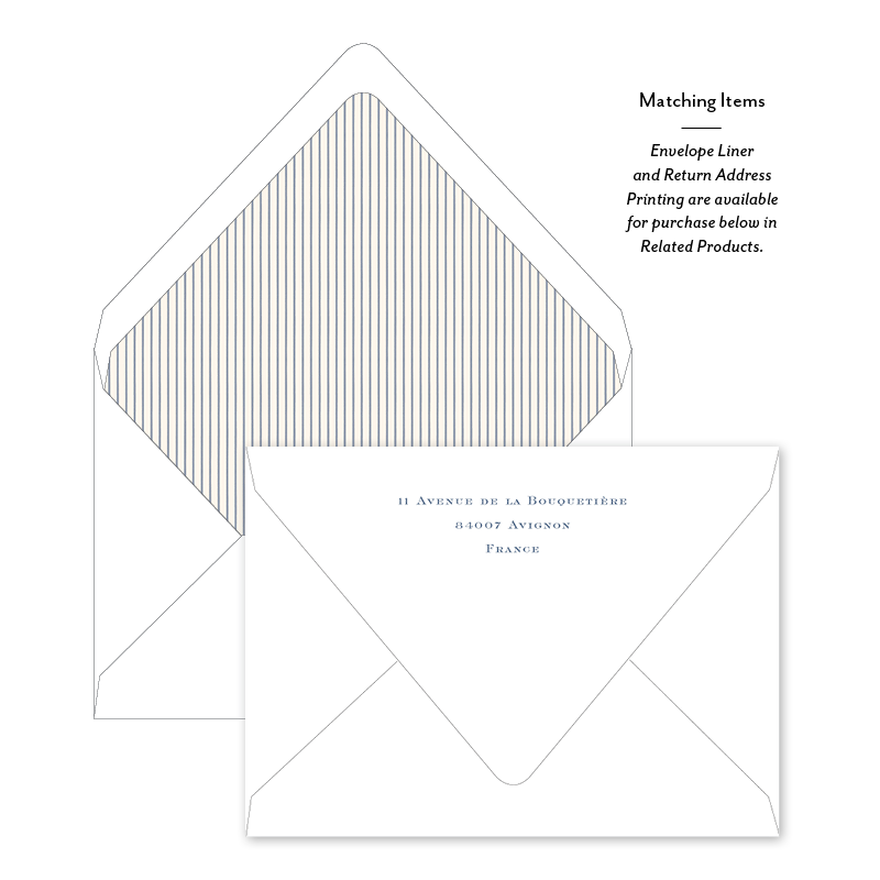 Select your order quantity from the dropbox menu below and check your total. Enter the personalization text for your notecard in the “Note” box below. Click Add to Cart. You will receive a proof notification via email and text message within 3 to 5 business days.Each card comes with one free BLANK Eggshell White envelope.