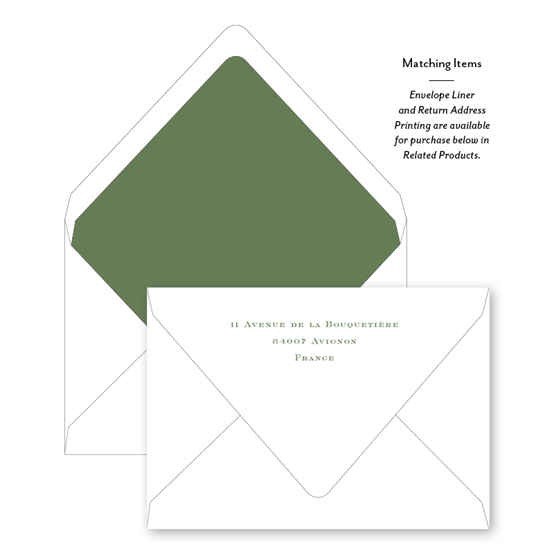 Select your order quantity from the dropbox menu below and check your total. Enter the personalization text for your notecard in the “Note” box below. Click Add to Cart. You will receive a proof notification via email and text message within 3 to 5 business days.Each card comes with one free BLANK Eggshell White envelope.