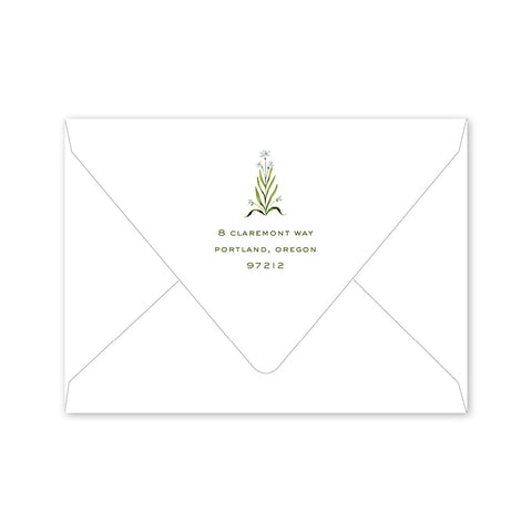Select your order quantity from the dropbox menu below and check your total. Enter the personalization text for your notecard in the “Note” box below. Click Add to Cart. You will receive a proof notification via email and text message within 3 to 5 business days.Each card comes with one free BLANK Eggshell White envelope.