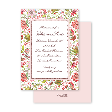 Oiseaux en Fleurs Border Invitation Script Recipient Address Printing