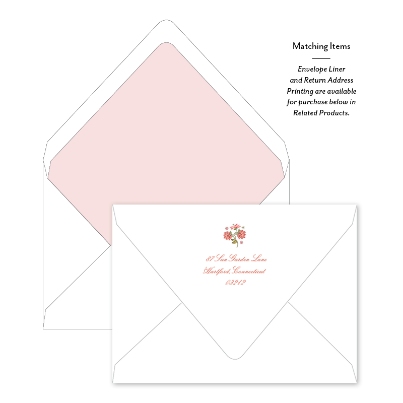 Select your order quantity from the dropbox menu below and check your total. Enter the personalization text for your notecard in the “Note” box below. Click Add to Cart. You will receive a proof notification via email and text message within 3 to 5 business days.Each card comes with one free BLANK Eggshell White envelope.
