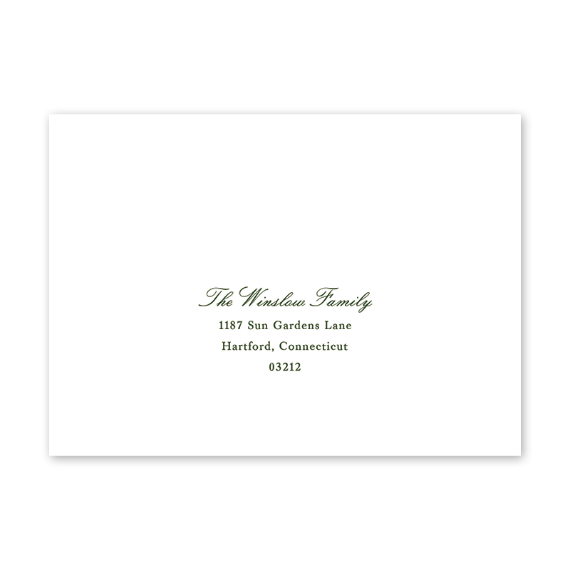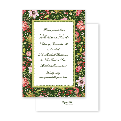 Oiseaux en Fleurs Verte Border Invitation Script Recipient Address Printing