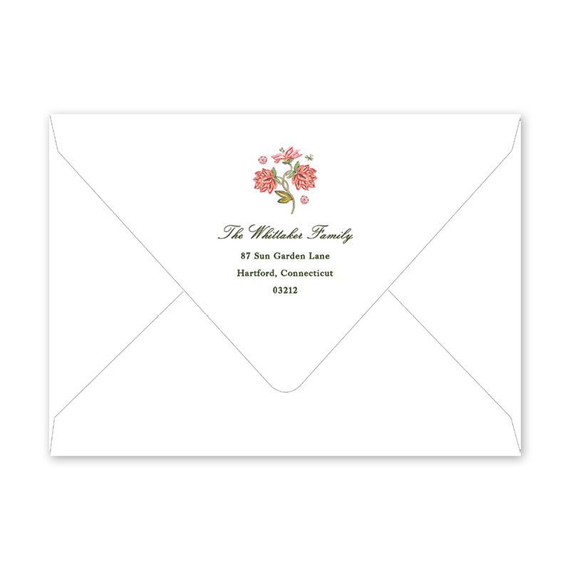 Enter your order quantity and check your total. Please enter your address EXACTLY like you want it printed on your envelope in the "Note" box below. Click Add to Cart. You will not receive a proof during the holidays (September 15 – December 31), unless your accompanying card requires a proof. If you do not include your address in the "Note" box or email it to Customer Service within 24 hours of placing your order, we will use your shipping address as the printed return address on your envelope.
