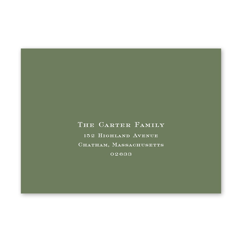 Enter your order quantity and check your total. Please enter your address EXACTLY like you want it printed on your envelope in the "Note" box below. Click Add to Cart. You will not receive a proof during the holidays (September 15 – December 31), unless your accompanying card requires a proof. If you do not include your address in the "Note" box or email it to Customer Service within 24 hours of placing your order, we will use your shipping address as the printed return address on your envelope. Enter your order quantity and check your total. Then click the Customize and Add to Cart button to enter your address and add the envelope to your cart. | /