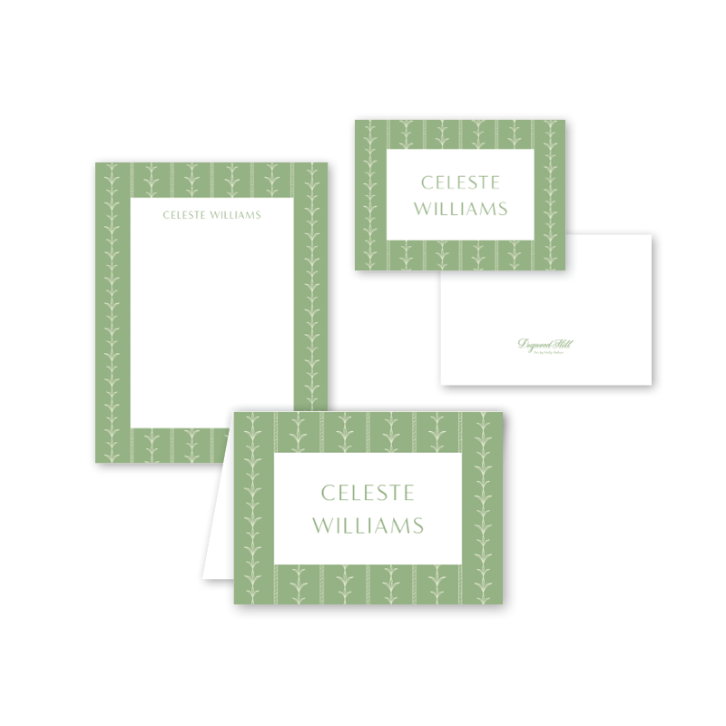25 personalized notecards sized 3.5 x 4.875 inches folded on 120 lb Mohawk Eggshell White Paper
