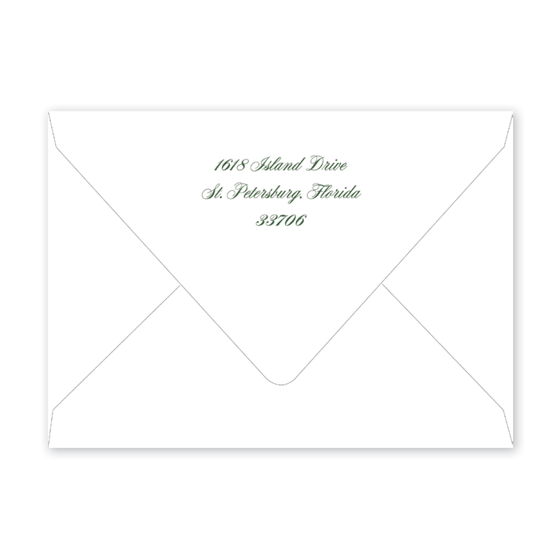 Enter your order quantity and check your total. Please enter your address EXACTLY like you want it printed on your envelope in the "Note" box below. Click Add to Cart. You will not receive a proof during the holidays (September 15 – December 31), unless your accompanying card requires a proof. If you do not include your address in the "Note" box or email it to Customer Service within 24 hours of placing your order, we will use your shipping address as the printed return address on your envelope.