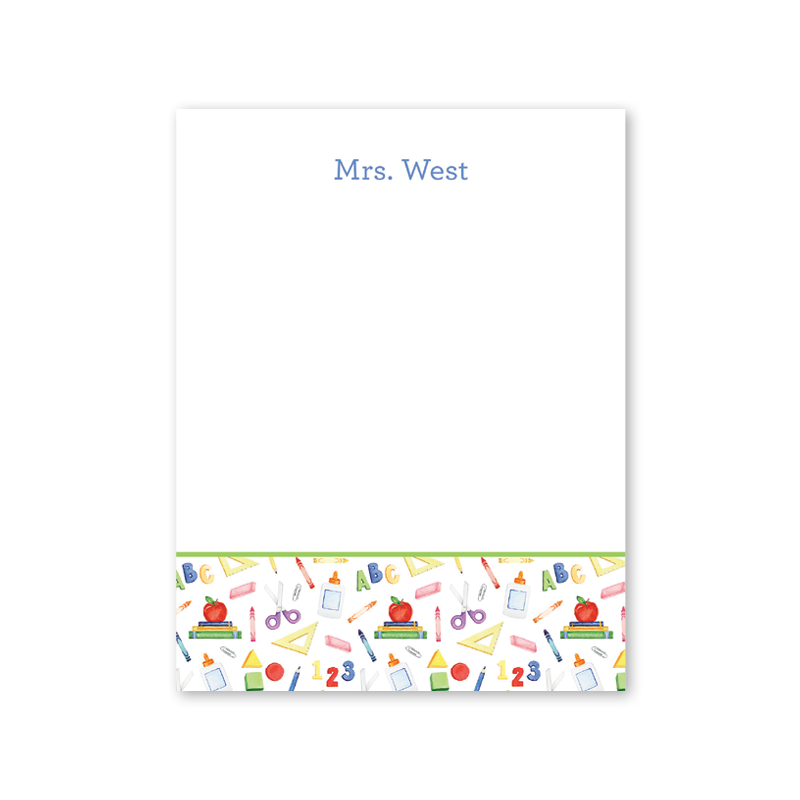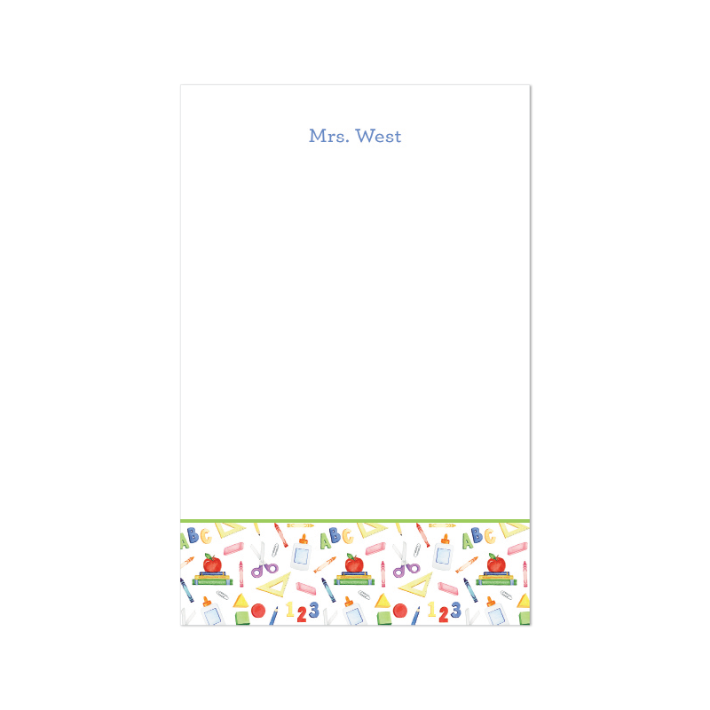 100 sheet personalized notepad sized 4.25 x 5.5 inches on 80 lb paper