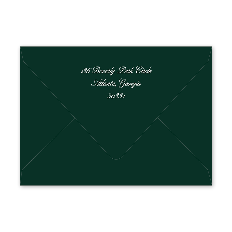 Enter your order quantity and check your total. Please enter your address EXACTLY like you want it printed on your envelope in the "Note" box below. Click Add to Cart. You will not receive a proof during the holidays (September 15 – December 31), unless your accompanying card requires a proof. If you do not include your address in the "Note" box or email it to Customer Service within 24 hours of placing your order, we will use your shipping address as the printed return address on your envelope. Enter your order quantity and check your total. Then click the Customize and Add to Cart button to enter your address and add the envelope to your cart. | /