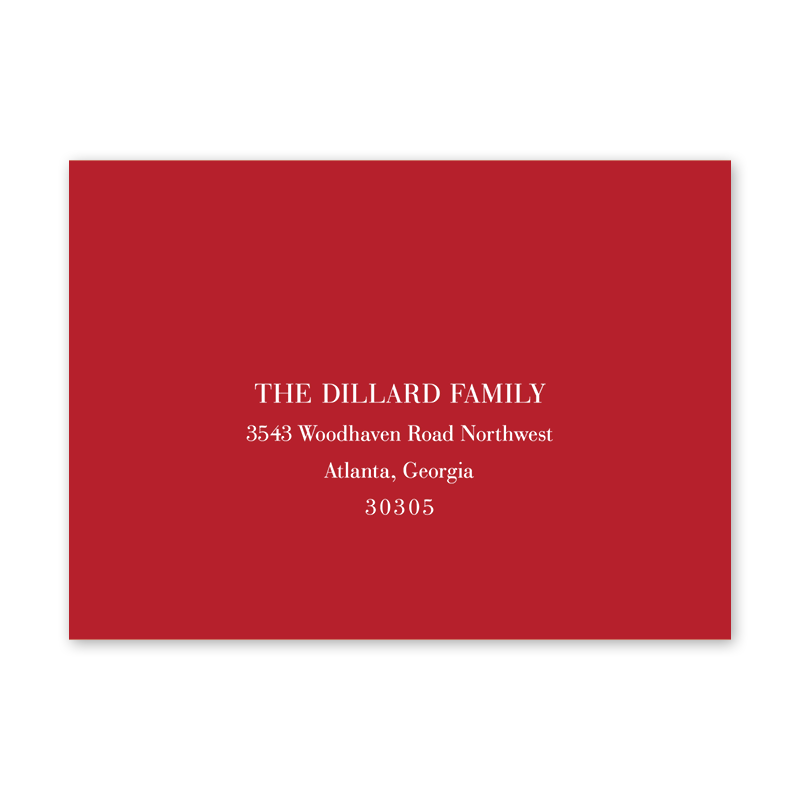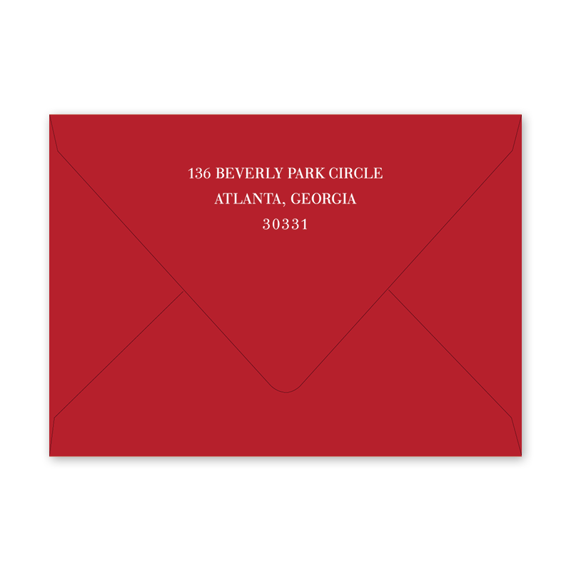 Enter your order quantity and check your total. Please enter your address EXACTLY like you want it printed on your envelope in the "Note" box below. Click Add to Cart. You will not receive a proof during the holidays (September 15 – December 31), unless your accompanying card requires a proof. If you do not include your address in the "Note" box or email it to Customer Service within 24 hours of placing your order, we will use your shipping address as the printed return address on your envelope. Enter your order quantity and check your total. Then click the Customize and Add to Cart button to enter your address and add the envelope to your cart. | /
