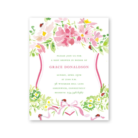 Pink Cosmos & Ladybug Crest Baby Shower Envelopes