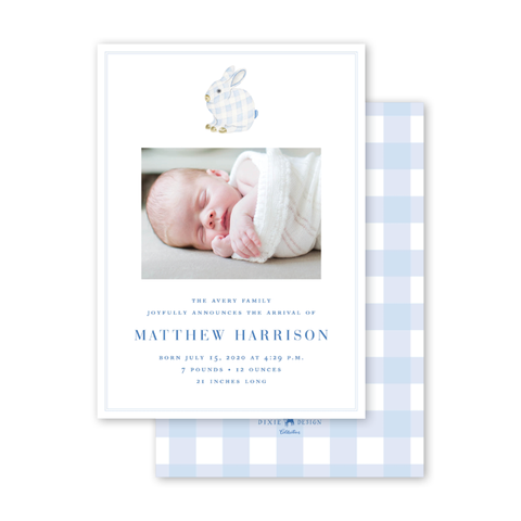 Porcelain Bunny Blue Birth Announcement Envelopes