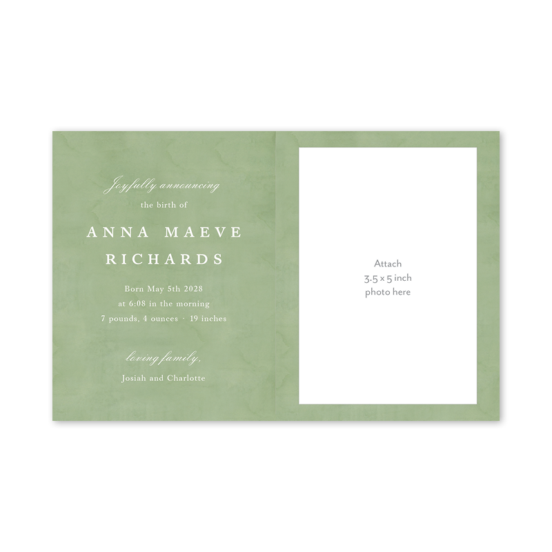 Porcelain Verte Photo Mount Folded Birth Announcement