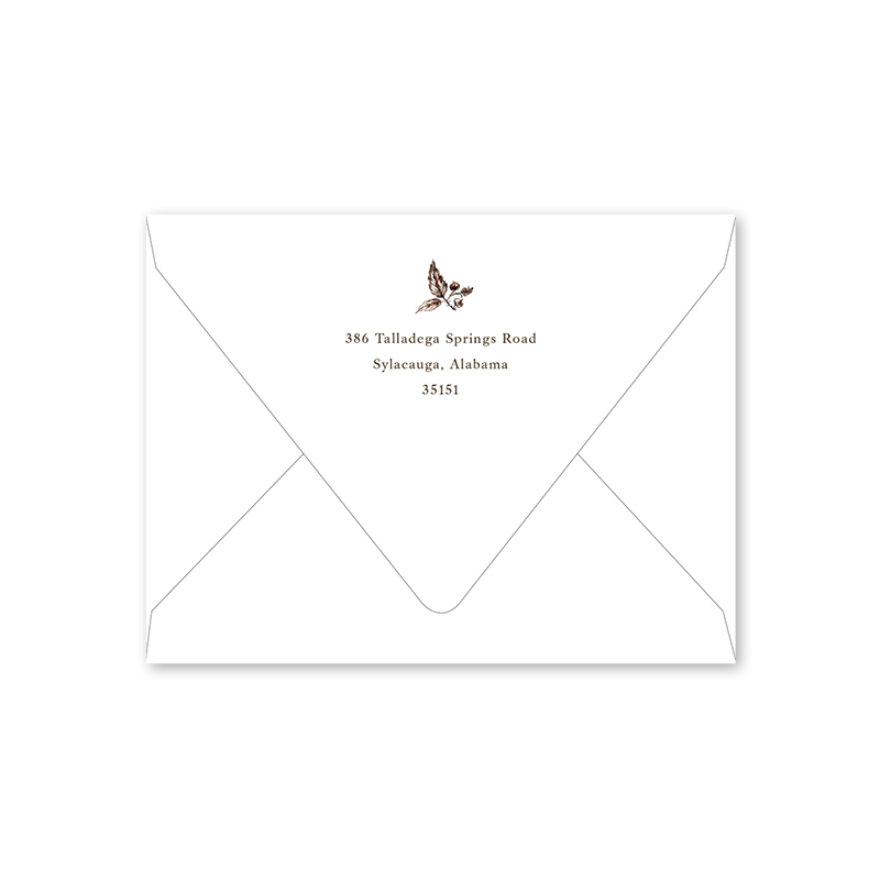 Enter your order quantity and check your total. Please enter your address EXACTLY like you want it printed on your envelope in the "Note" box below. Click Add to Cart. You will not receive a proof during the holidays (September 15 – December 31), unless your accompanying card requires a proof. If you do not include your address in the "Note" box or email it to Customer Service within 24 hours of placing your order, we will use your shipping address as the printed return address on your envelope. Enter your order quantity and check your total. Then click the Customize and Add to Cart button to enter your address and add the envelope to your cart.