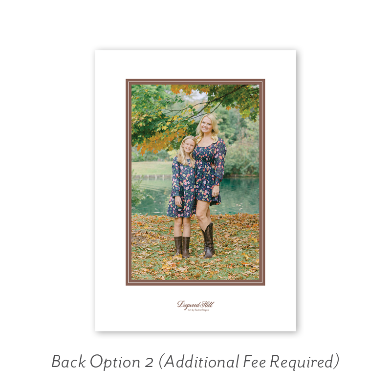 Select your order quantity from the dropdown menu below and check your total. Then click the Customize and Add to Cart button to create your card and add it to your cart.Want to add up to 4 photos on the back or inside of your card? Click here to add the fee to your cart.