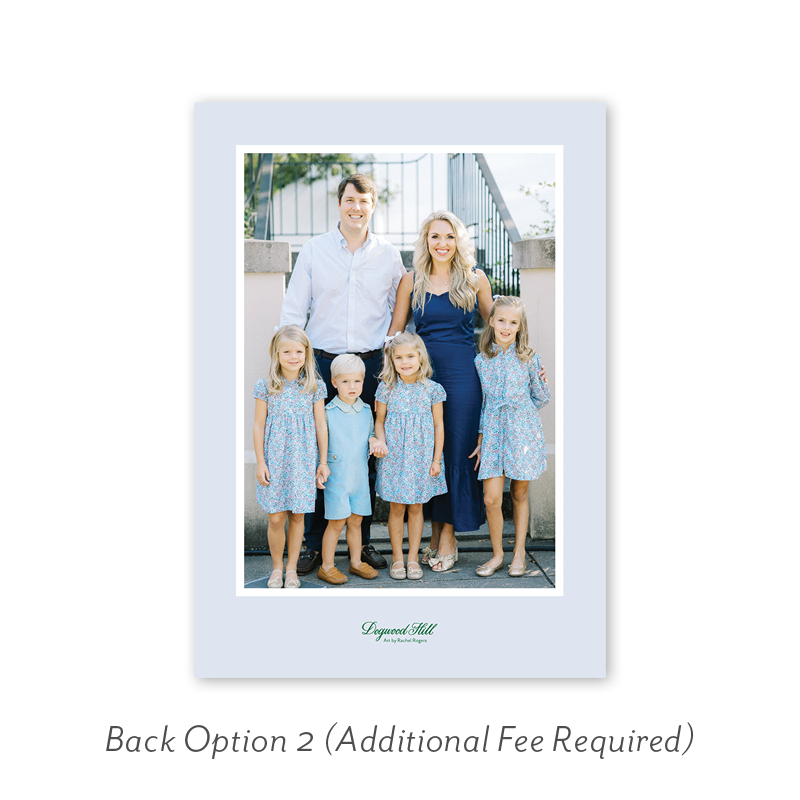 Select your order quantity from the dropdown menu below and check your total. Then click the Customize and Add to Cart button to create your card and add it to your cart.Want to add up to 4 photos on the back or inside of your card? Click here to add the fee to your cart.