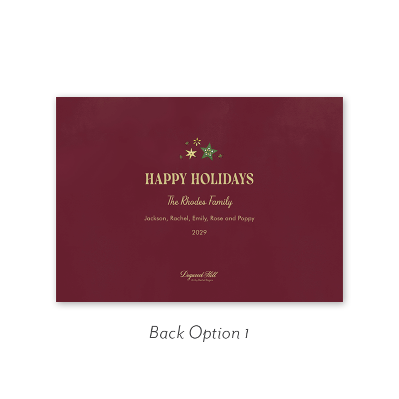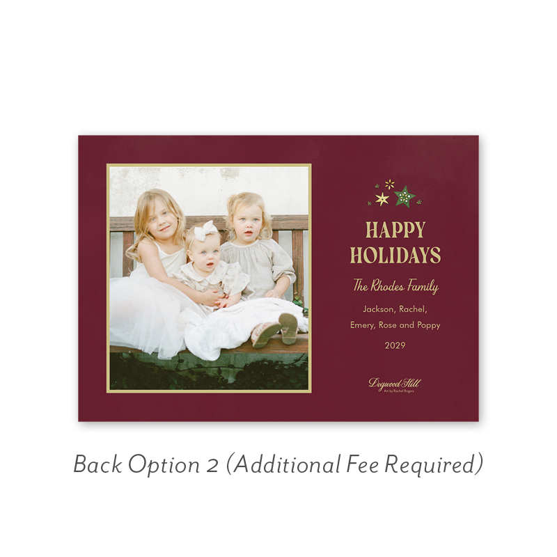 Select your order quantity from the dropdown menu below and check your total. Then click the Customize and Add to Cart button to create your card and add it to your cart.Want to add up to 4 photos on the back or inside of your card? Click here to add the fee to your cart.