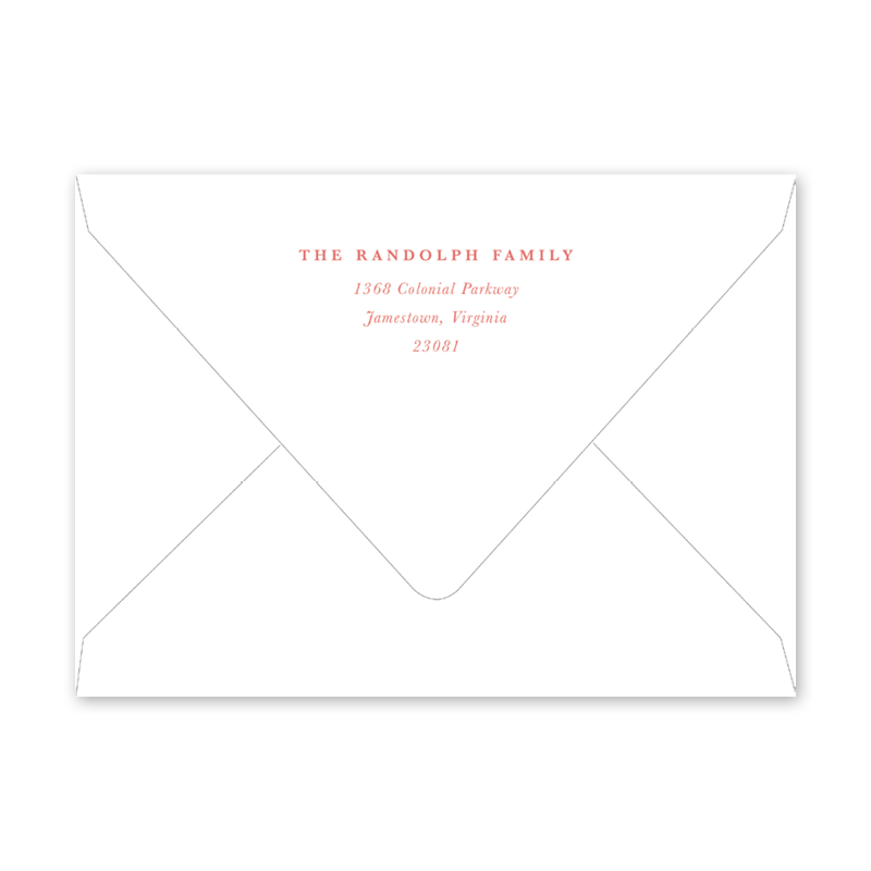 Enter your order quantity and check your total. Please enter your address EXACTLY like you want it printed on your envelope in the "Note" box below. Click Add to Cart. You will not receive a proof during the holidays (September 15 – December 31), unless your accompanying card requires a proof. If you do not include your address in the "Note" box or email it to Customer Service within 24 hours of placing your order, we will use your shipping address as the printed return address on your envelope.