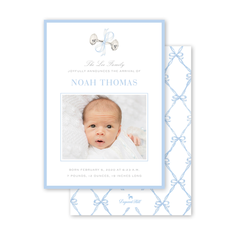 Rattle and Bow Blue Birth Announcement II Envelopes