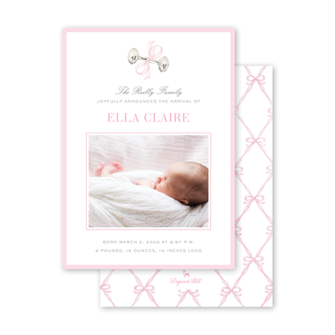 Rattle and Bow Pink Birth Announcement II Envelopes