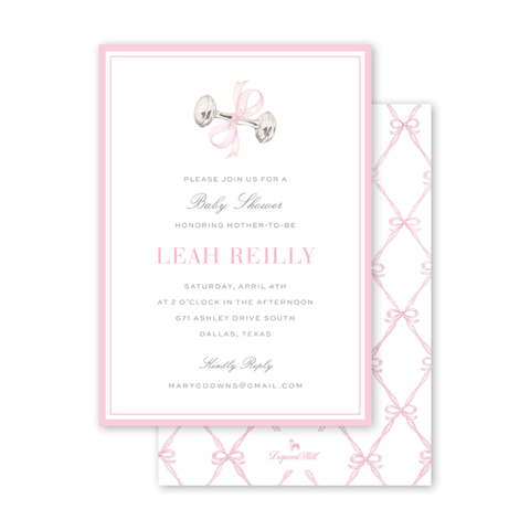 Rattle and Bow Pink Border Baby Shower Envelopes