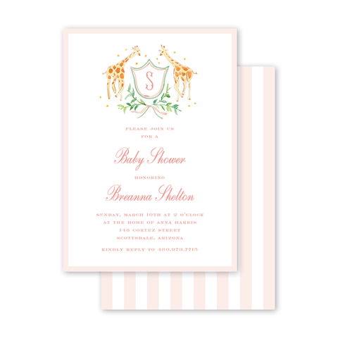 Ribbon Crest Giraffe Pink Baby Shower Envelopes