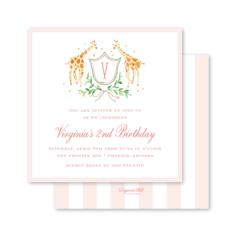 Ribbon Crest Giraffe Pink Birthday Envelopes