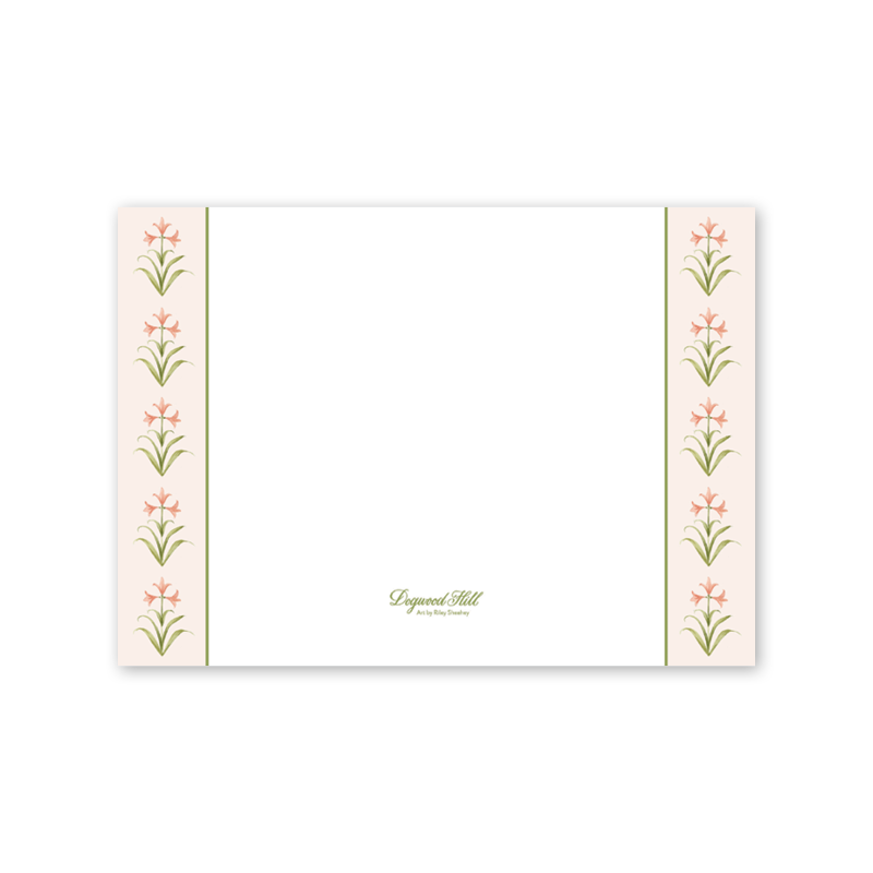 Select your order quantity from the dropbox menu below and check your total. Enter the personalization text for your notecard in the “Note” box below. Click Add to Cart. You will receive a proof notification via email and text message within 3 to 5 business days.Each card comes with one free BLANK Eggshell White envelope.