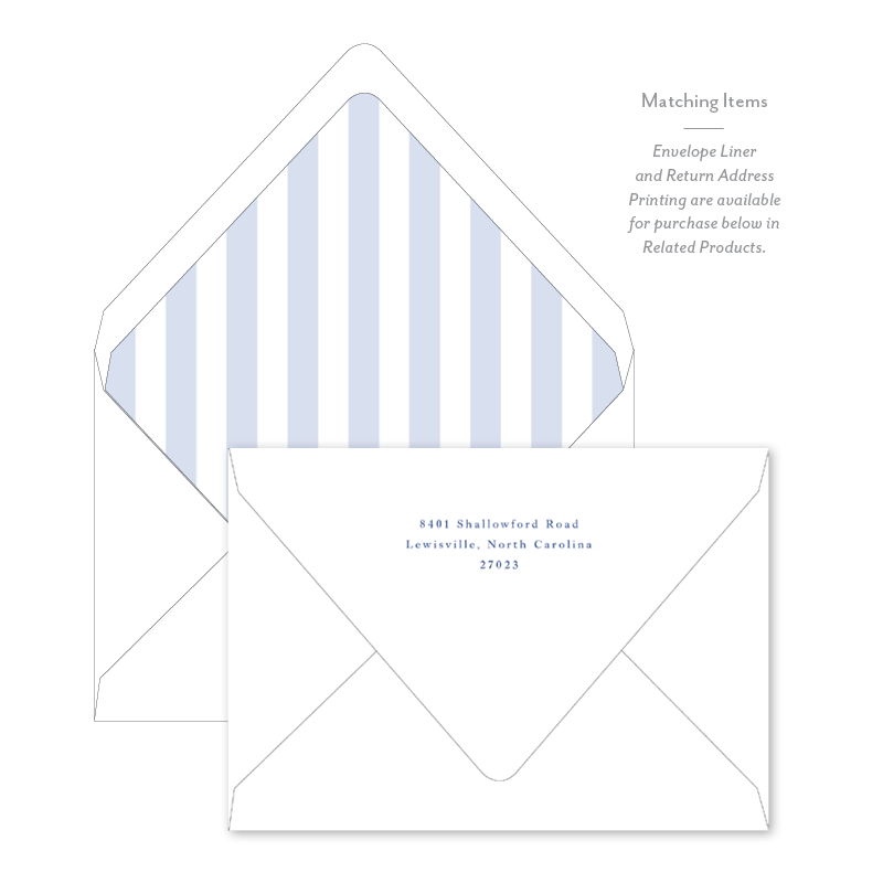 Select your order quantity from the dropbox menu below and check your total. Enter the personalization text for your notecard in the “Note” box below. Click Add to Cart. You will receive a proof notification via email and text message within 3 to 5 business days.Each card comes with one free BLANK Eggshell White envelope.
