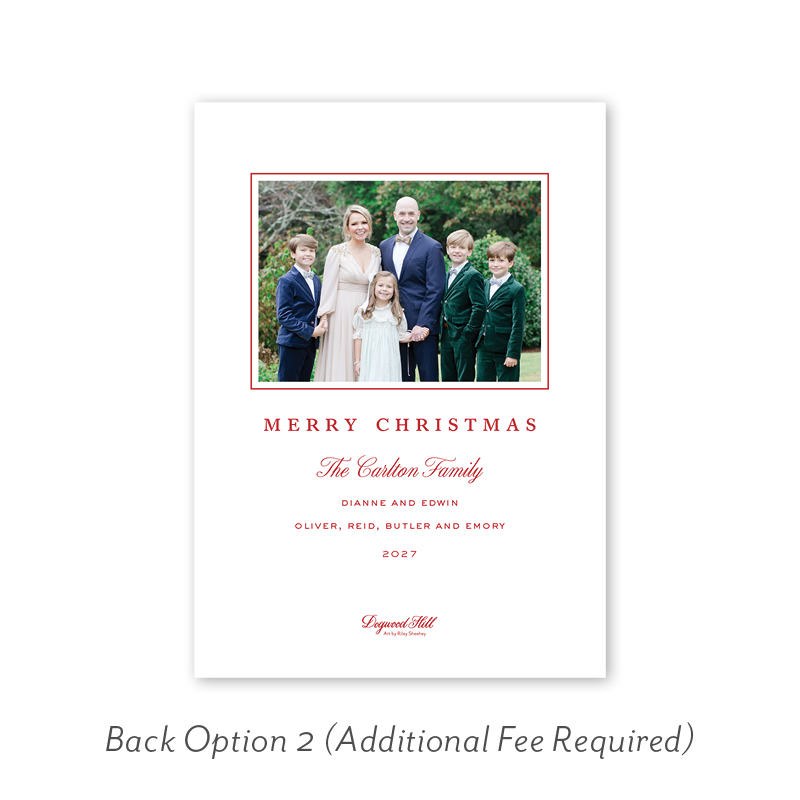 Select your order quantity from the dropdown menu below and check your total. Then click the Customize and Add to Cart button to create your card and add it to your cart.Want to add up to 4 photos on the back or inside of your card? Click here to add the fee to your cart.