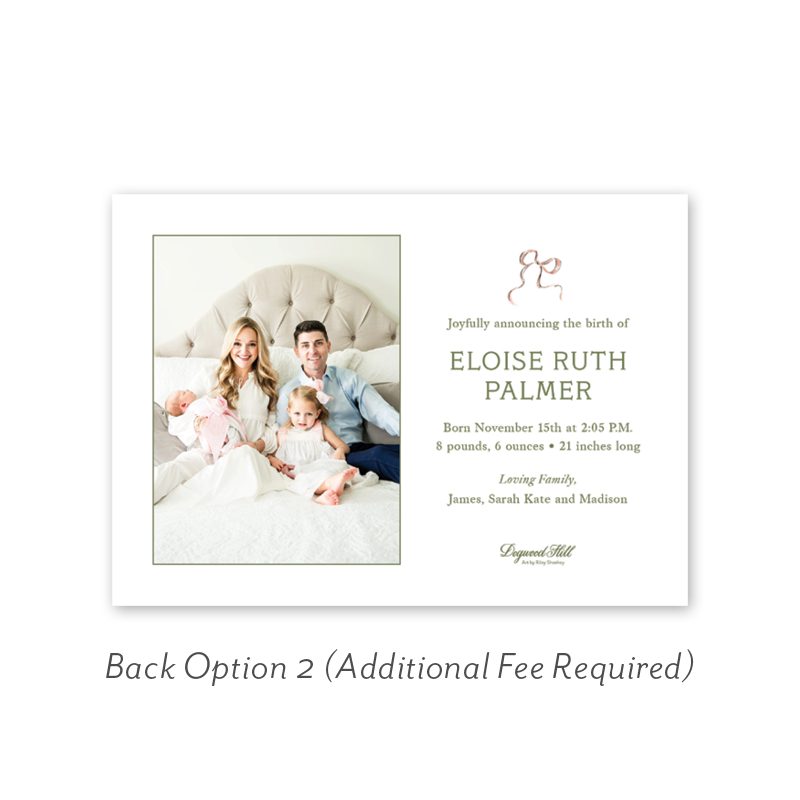 Want to add up to 4 photos on the back or inside of your card? Click here to add the fee to your cart.