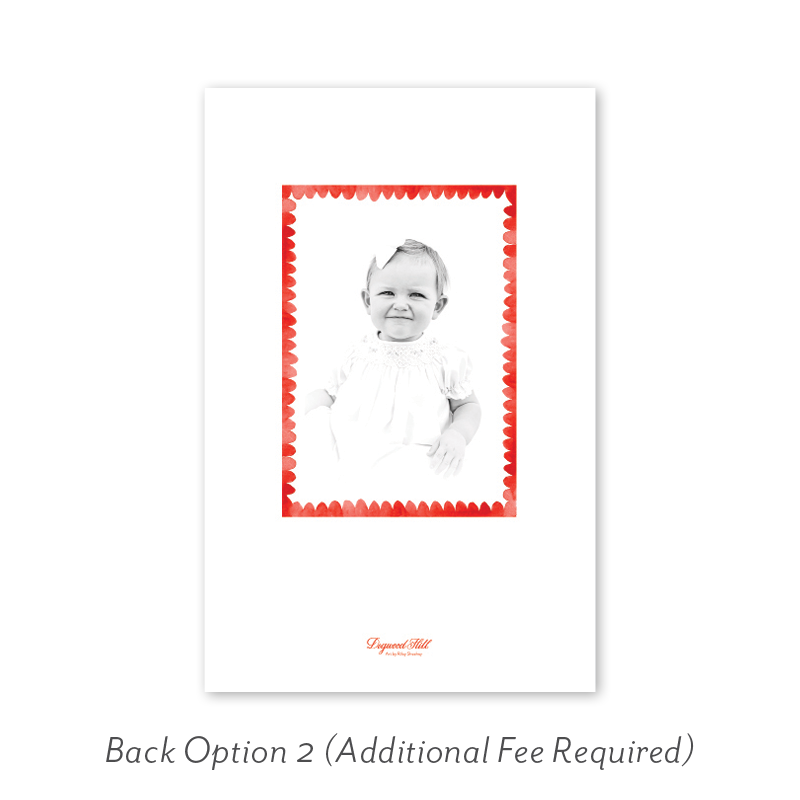 Select your order quantity from the dropdown menu below and check your total. Then click the Customize and Add to Cart button to create your card and add it to your cart.Want to add up to 4 photos on the back or inside of your card? Click here to add the fee to your cart.