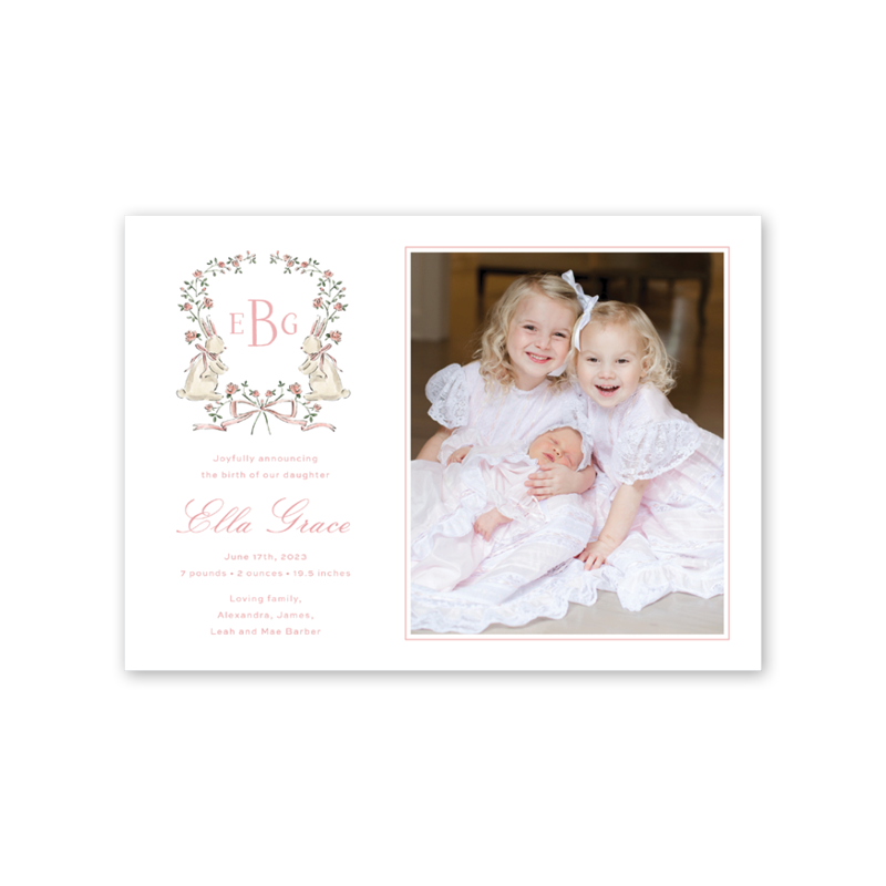 Rose Bunnies Landscape Birth Announcement