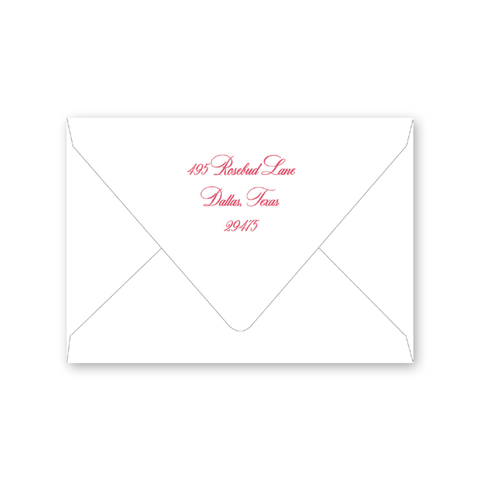 Select your order quantity from the dropbox menu below and check your total. Enter the personalization text for your notecard in the “Note” box below. Click Add to Cart. You will receive a proof notification via email and text message within 3 to 5 business days.Each card comes with one free BLANK Eggshell White envelope.