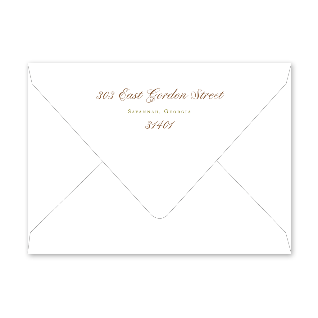 Enter your order quantity and check your total. Please enter your address EXACTLY like you want it printed on your envelope in the "Note" box below. Click Add to Cart. You will not receive a proof during the holidays (September 15 – December 31), unless your accompanying card requires a proof. If you do not include your address in the "Note" box or email it to Customer Service within 24 hours of placing your order, we will use your shipping address as the printed return address on your envelope.